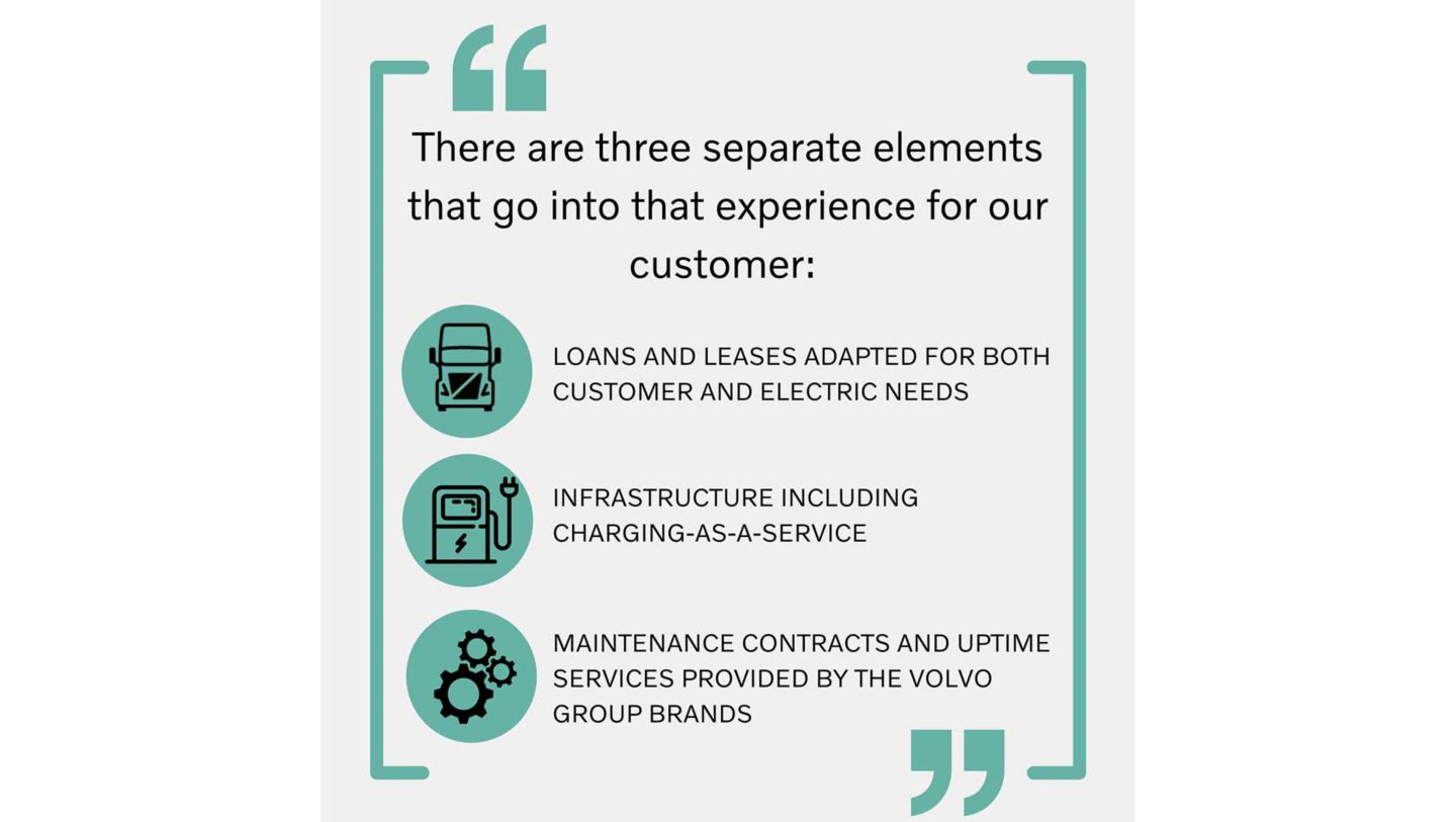 VFS has always valued providing a complete solution to customers, and I would say with electrification we are taking ‘complete’ to the next level. There are really three separate elements that go into that experience for the customer that are ready today: loans and leases adapted for both customer and electric needs, infrastructure including charging-as-a-service, as well as maintenance contracts and uptime services provided by the Volvo Group brands. In the future, we expect to include insurance offers and a wider range of payment options. We have also worked on energy-as-a-service, which entails energy sales and subscription models that we can further explore with Volvo Energy. Accessibility is key here – we want to build on decades of experience to make these sustainable, zero emission, quiet vehicles a possibility for customers all around the world.