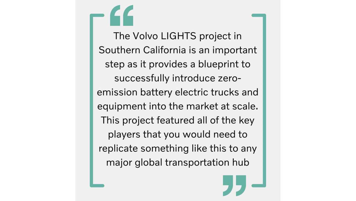 The Volvo LIGHTS project has really brought to light (no pun intended) how we can make electric happen for customers. The project in Southern California is an important step as it provides a blueprint to successfully introduce zero-emission battery electric trucks and equipment into the market at scale, and because the project featured all of the key players that you would need to bring something like this to any major global transportation hub. Most recently, the Mobile Source Air Pollution Reduction Review Committee (MSRC), a committee of California’s largest transportation and clean air agencies and stakeholders, awarded Volvo Financial Services more than $3.9 million dollars to help fund the deployment of 14 Volvo VNR Electric trucks. Funding and grants like this from MSRC are key for us in successfully transitioning customers to electric products.